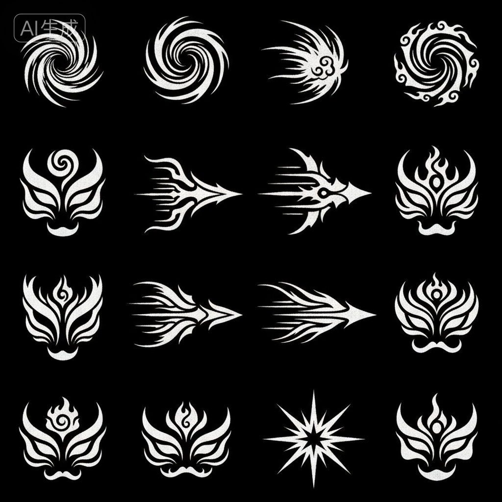 你想要的不仅仅是功能图标,而是“道”的视觉化——用最简洁的笔触,表现最宏大的天地法则。我们要摒弃传统手游那种浮夸、立体、带框的沉重感,转向“虚实相生、气韵生动”的扁平化符号设计。
